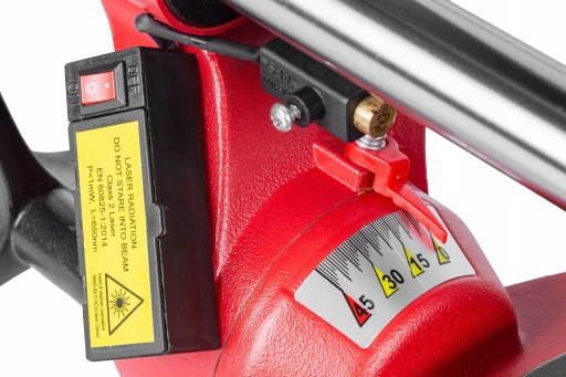 Urządzenie wyposażone jest również w laser, który zapewnia kontrolę nad położeniem oraz kierunkiem cięcia, gwarantując precyzję oraz worek do odsysania trocin, dzięki czemu możemy utrzymać porządek na stanowisku pracy.