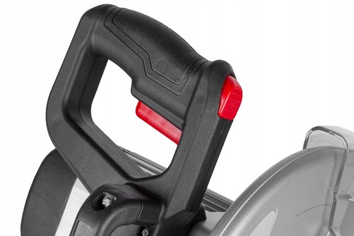 Tarcza o średnicy 254mm chroniona przez solidną osłonę oraz ergonomiczny uchwyt z włącznikiem zapewniają bezpieczeństwo i komfort użytkowania.