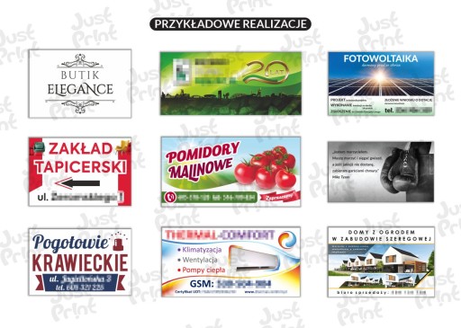 Firma Justprint istnieje od 2004roku. Posiadamy własne studio Pre-Press, dział druku wielkoformatowego, dział drukowanych dekoracji wnętrz, dział dekorów szklanych, oraz drukarnię offsetową, sitową i cyfrową. Drukujemy praktycznie na wszystkich podłożach w wielu technikach druku: eko-solvent szer 1,6m, Solvent szer 3.2m, UV 2m, sublimacja 1,8m. Pracujemy na sprzęcie Mimaki, SummaCut, D-Gen, Flora, Kala, Leister, Digima, Bubblefree, Epoglass i wielu innych. Nasz bogaty i nowoczesny park maszynowy, doświadczenie zespołu i pasja do szeroko pojętej poligrafii zapewnią Państwu najwyższą jakość świadczonych usług.