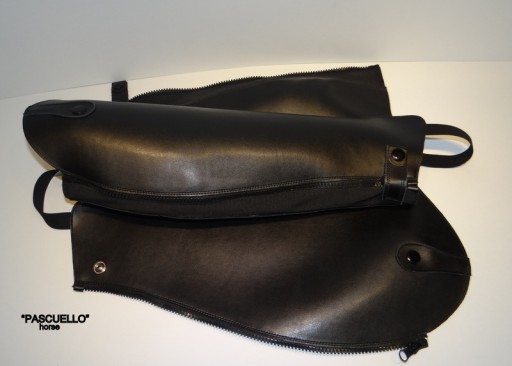 Czapsy wykonane z tworzywa skóropodobnego o podwyższonej wytrzymałości. Z tyłu wstawka z elastycznej gumy(rozciągliwość ok 1cm) zapinane na solidny polski zamek.
