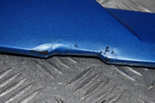 Oryginalna osłona wahacza przedniego górnego lewego, element używany, posiada drobne zarysowania oraz wyłamany uchwyt widoczne na zdjęciach.